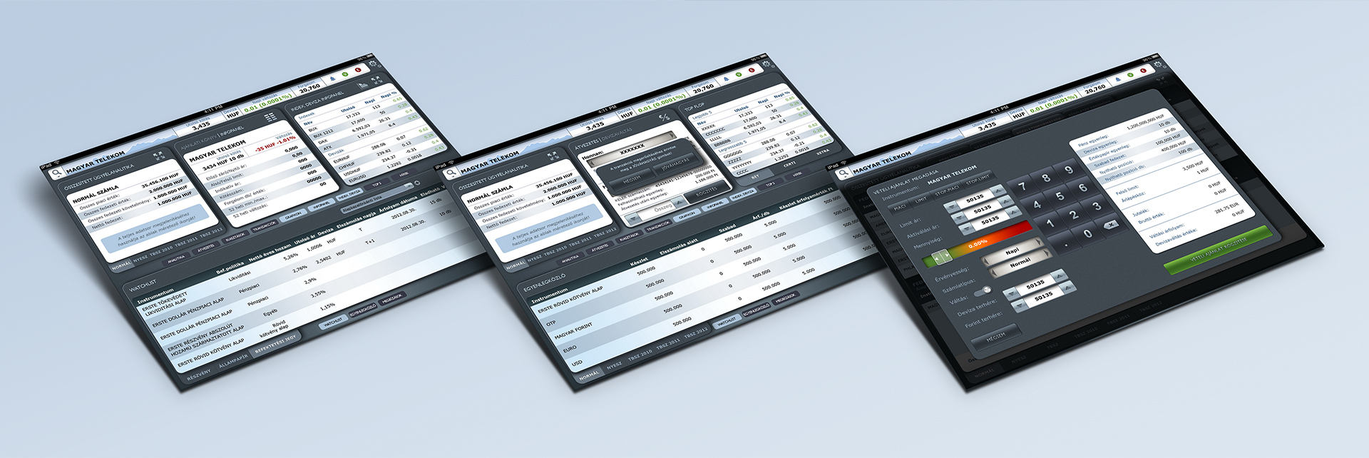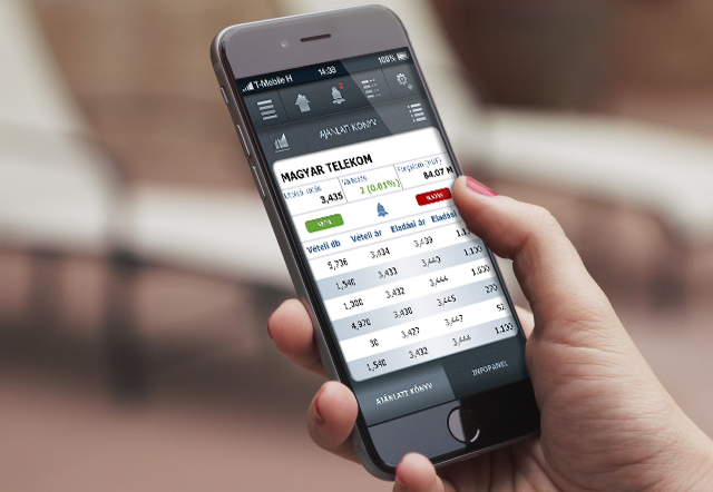 Az iPad és iPhone alkalmazás online kereskedési platformot nyújt a felhasználóknak. Az alkalmazásban megtalálhatók a legfrissebb hírek és elemzések, beállítható árfolyam értesítés, grafikonos részvény árfolyam megjelenítések, saját részvénylista összeállítása. Az alkalmazás UI először tablet-re készült el majd a bevezetés után kiadásra került telefonra és Android platformra is. Roppant izgalmas és átgondolt tervezést igénylő UI és UX projekt volt ez számunkra.