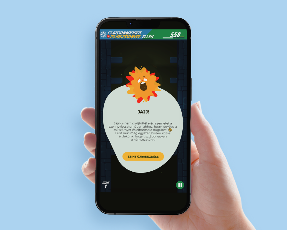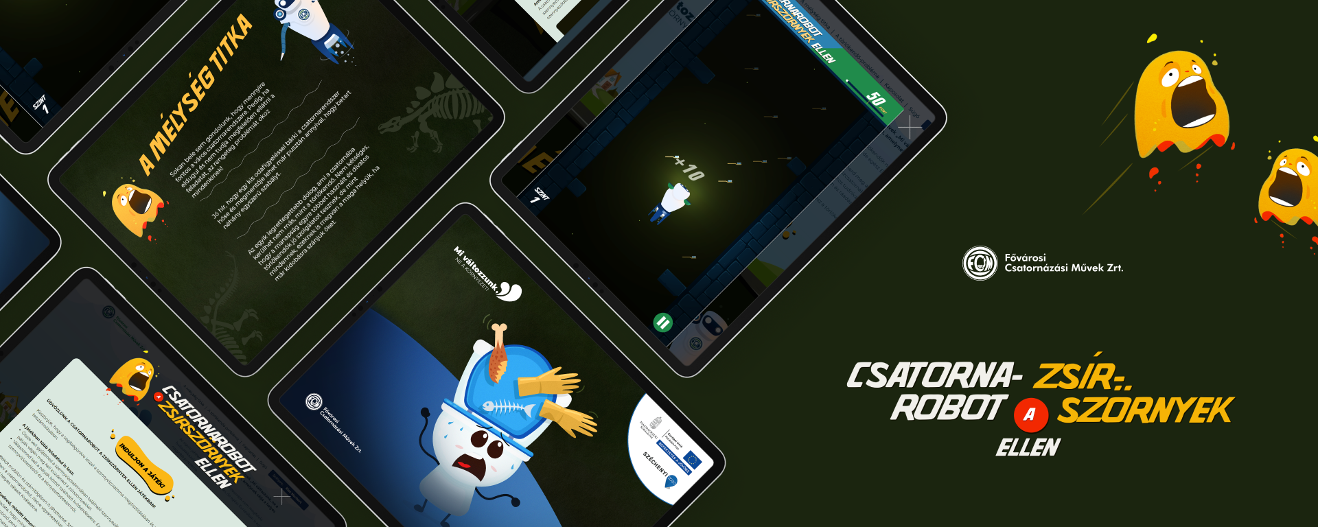 A Csatornarobot a zsírszörnyek ellen című online játék, valamint a hozzá kapcsolódó microsite és fizikai társasjáték elkészítése nem csak a kreatívjainknak és grafikusainknak, de a fejlesztőinknek is hatalmas örömöt jelentett. A microsite, az abban helyet foglaló játék, valamint az ezt népszerűsítő social media kampány a Fővárosi Csatornázási Művek felkérésére készült, és a célja a törlőkendő-problémára való figyelemfelhívás volt.
