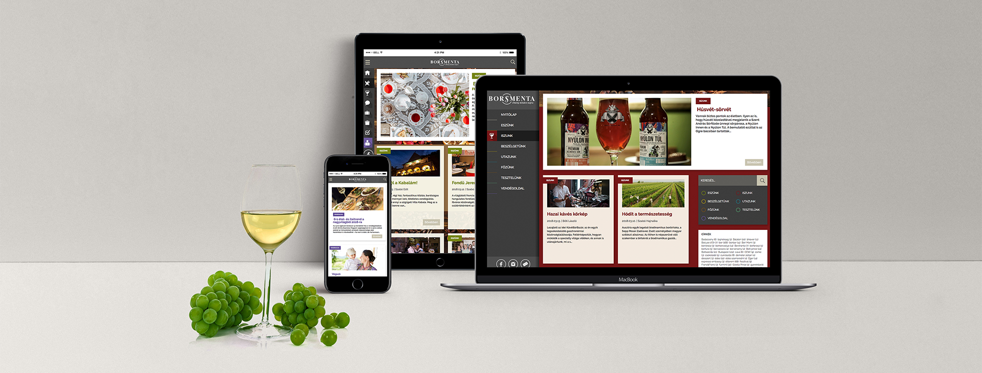 A Borsmenta - gasztro magazin két okból volt különösen közkedvelt csapatunkban. Egyrészt mert az online magazin minden szegletét mi terveztük és fejlesztettük a logótól egészen a backend felületig, másrészt mert az üzleti világ megoldásaitól eltérő, közvetlen és személyes hangulatú arculatot kellett elérnünk.