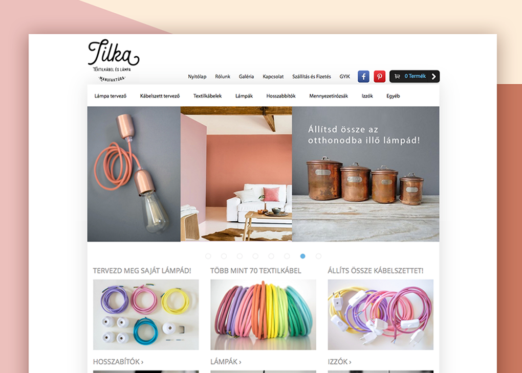 A tilka webshop ennek megfelelően egy ugyancsak teljesen speciális felépítésű webshop ahol a felhasználó összeválogathatja, összeállíthatja a maga egyedi lámpa megoldását a foglalattól egészen a buráig.